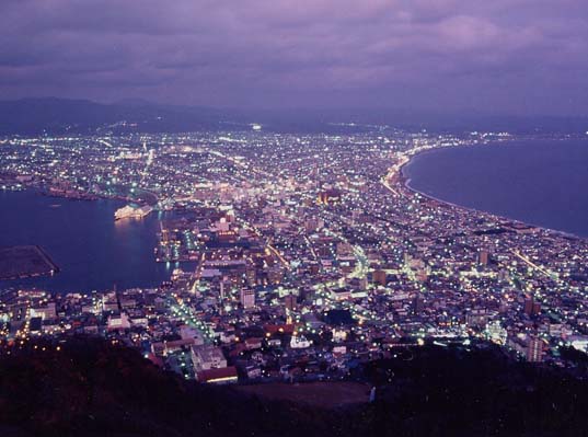 | また本文とは関係ない写真で申し訳ないが、今回は大判でドーンとオマケしちゃうのだ。 この時期になると何故か夜景とかイルミネーションとかいうものに目が行ってしまう。 これは有名な函館の夜景で、ここで私は多くの写真を撮っているがその中でも気に入っている1枚。 この日はやたら寒くて気温1度位。でもここはいつも風が強くてこの日も強かったのだ。だから体感 気温は0度以下だったと思う。震えながら撮影した記憶がある。 参考までに書いておくとフィルムはRDPV、絞りf16、シャッターは10〜15秒位だったと思う。 カメラはミノルタXD |