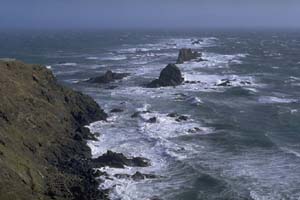| 強風の襟裳岬 襟裳岬は日高山脈が太平洋に沈み込む所で、こうして 眺めてみるとそれが良く理解できる場所である。 カメラ:ミノルタXD フィルム:RDPV |