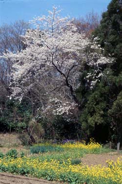 | 私個人としては公園などに植えられた桜 よりも、こうして山里にひっそりと咲いてい る桜の方が好きだ。 カメラはミノルタα-507si フィルムはRDPV |