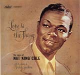 ナット・キング・コール/恋こそはすべて 珠玉の傑作だ。何でこの人の声はこんなにも人の心を癒すのだろう。“天は二物を与えず”とは良く言われる言葉だが、この人に限ってはこの言葉は当てはまらない。ジャズ・ピアニストとしての腕前もなかなかで数々の録音を残しているが、やはりこの人は歌手としての名声の方が圧倒的に大きいと思う。 このアルバムは巨匠ゴードン・ジェンキンスの指揮とアレンジのもと、素晴らしい歌声と楽曲が満載された名盤と言える。特に「恋に落ちた時」や「スター・ダスト」の素晴らしさは時を越えて現在に生きる名曲・名唱だ。 バックの演奏も素晴らしく、こういう豪華絢爛・ゴージャスなアレンジと指揮はゴードン・ジェンキンスの真骨頂を見る思いで、ひたすら優しく音楽に浸れる。 |